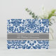 15th wedding anniversary party invitation card in elegant dark navy blue, grey and white classic and chic vintage floral damask pattern, delicate and contemporary. Customisable with your party details.