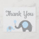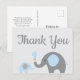 Blue Grey Elephant Baby Shower Thank You Postcard