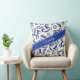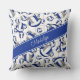 This cute volleyball team colours throw pillow for girls features a pattern of varied size stylised blue, grey and white volleyballs turned every which way overlying a volleyball net detail graphic - the volleyballs' blue and grey panels are blended with an artsy, girly floral pattern - personalise her name in a sophisticated handwritten font on a bold, angled, full width blue colour strip - white background and blue colour strip are customisable - by katz_d_zynes