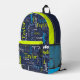 blue grey lime green personalised name all over printed backpack