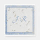 Design features an elegant blue and grey toned "marbling" effect as background to the shape elegantly displaying monogram of bride and groom in a silver-grey lettering. The appearance of delicate ribbons and thrown rice overlay the design. Designed to accompany the "Blue and Grey Marble Wedding Suite." Full collection can be found here: