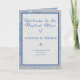 Design features your text in traditional Catholic Nuptial Mass format displayed against a blue & grey marble backing. The Catholic symbol IHS with a cross is displayed on front. Background features a marbling effect. Room for up to seven bridesmaids and Groomsmen. Back includes customisable message of gratitude and an optional memorial for those loved ones who have passed. Also includes room for your photo. All text is customisable. Designed to coordinate with the "Blue & Grey Marble Monogrammed Wedding Suite."