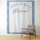 Design features the elegant look of blue and grey marble as background to a rectangular shape. Names of bride and groom are featured as an arch above the customisable word "Forever!". Designed to coordinate with the Blue & Grey Marble Monogrammed Wedding Suite.