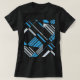 An artistic, and striking, abstract geometric design is created in this combination of shapes and lines is various shades of white, light grey, and medium blue. Pictured here on a black t-shirt, but also available in a number of styles and colours. Inspired by the Native American/Southwest art style (with some Mid-century Modern influence), the design projects a vibrant and innovative artistic quality for a versatile and trendy addition to your casual and everyday wear (whether at home, socialising with friends, playing sports, or running about town). The shirt design as "wearable art" also expresses a sense of your individualised style, contributing to a feeling of being "together" and creative in your personal wardrobe choices.