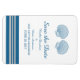 Elegant and classic Nautical Sea Shells Save the Date Flexi Magnet with a pair of simple seashells and an array of stripes in dark navy blue and grey. This nautical beach themed save the date can be easily customised with your wedding details. For more customisation options, click on the Customise It button.