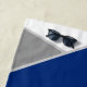 This custom colours volleyball beach towel features the image of a simple, abstractly oversized volleyball with blue, grey and white panels - personalise with the athlete's name & jersey number -- you can EASILY change the colours on this towel: go ahead and smash that blue "Edit Design" button above and change the volleyball's blue & grey panels and text colours to your team's colours or favourite colours - by katz_d_zynes