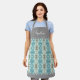 Abstract fractal snowflakes in blue and grey all-over print Apron. A beautiful pattern in light blue and grey covers this apron. On the upper and the bottom parts of the apron there are grey bands with scalloped edges. You can personalise it with your name.