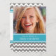 Custom Photo 16th Birthday party invitations in elegant and modern teal blue, charcoal grey and white fun and casual chevron zigzags stripes pattern. Add your name, photo, and party details for a unique and stylish 16th birthday party invitation.