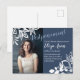 Unexpected date changes can happen. Send your understanding guests a date postponement postcard with blue-grey and white floral colour theme. These postponement announcement cards are perfect for any Bat Mitzvah, graduation, Quinceanera, teen birthday, anniversary, graduation, or wedding celebration.