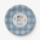 Blue Grey Snowflakes Snowman Holiday Party Paper Plate