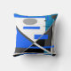 Blue Grey Teal Black White Geometric Abstract Art Cushion