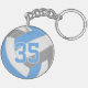 This team colours volleyball themed keychain for boys or girls features a realistic looking blue, grey and white volleyball upon which you can customise the player's name, jersey number and court position, plus school or club name and mascot name in a varsity letter style font - by katz_d_zynes