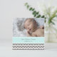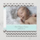 New baby boy birth announcement custom photo cards in adorable and elegant pastel turquoise blue, grey and white fun and modern chevron zigzags pattern, fully customisable with your baby's photo and birth details, a great way to share the happy news of the birth of your son with friends and family.