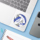 This blue, grey and white volleyball sticker with custom team and school mascot name features a floral kaleidoscopic pattern blended with the blue and grey volleyball panels and an artsy abstract swirl pattern blended with the white panels - her name and team name are customisable, as is her jersey number on a tiny white volleyball - by katz_d_zynes | search ALL katzdzynes' blue & grey or black volleyball team colours gifts >>>> https://www.zazzle.com/store/katz_d_zynes/products?cg=196655886495428252