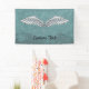 Wide open blue-grey wings illustration. Grunge blue background. Custom text.