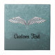 Wide open blue-grey wings illustration. Grunge blue background. Custom text.