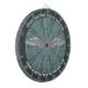 Wide open blue-grey wings illustration. Muddy blue background. Two custom text areas.