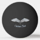 Wide open blue-grey wings illustration. Custom text on both sides.