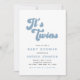 Blue Groovy Retro Boy Twins Minimal Baby Shower Invitation