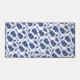 If you love guitars or guitar music, this is the desk mat for you! A fun pattern of blue watercolor guitar images, all different sizes, is placed on a white background. At the bottom is a blue lined white oval with your name, monogram, or other custom text.