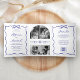 Blue Hand Drawn Bow QR Code Photo Wedding Tri-Fold Invitation