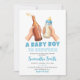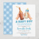 Blue Hand Drawn Minimalist A baby Boy is brewing Invitation