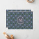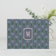 Moody, retro modern, 70s inspired flowers. A deep, blue-gray background with dusty blue and green, hand-drawn daisies, with little pops of bright magenta. Light pink monogram on the front and writing space on the back. Personalize by adding your own initial on the front.