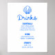 Blue Hand Drawn Seashell Coastal Bar Menu Poster