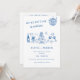 Blue Hand Drawn Whimsical Quirky Funky Wedding Invitation