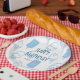 This cute birthday party paper plate features a white background with hand painted ice cream patterns in light blue. Perfect for summer celebrations! Change the background colour and personalise for your needs. You can find more matching products at my store.