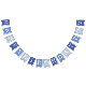 The flags have alternating nuances of blue, from darker to lighter blue. The letters are white, The message is "Happy Birthday" followed by a 3 letters name that you should change letter by letter (the default is Tom).