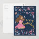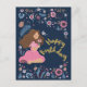Blue Happy Birthday Lady Floral Flowers Postcard