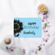 Blue Happy Birthday Sunflower Custom Name Gold Foil Greeting Card