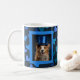 Your dog in a framed photo on a blue coffee mug full of hearts in shades of blue. Happy New Dog Year!