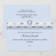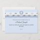 Gather all your loved ones together for this important occasion with this stylish invitation. Shades of blue, in harmony, adorned by an "eyelet" ribbon of white and blue waves runs across the top of this handsome invitation. A simple white cross in a circle crest is the focal point. Equally suited for a baptism, christening or first holy communion.