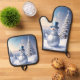 Beautiful Blue Hat Snowman Christmas Tree Oven Mitt & Pot Holder Set