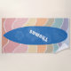 Blue Hawaii Surfboard on Pastel Waves Beach Towel