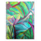 From original watercolor painting of tropical "Blue Hawaii" foliage leaves, tropical palm plant. This original brightly coloured art features colours of green, blue, purple and burgundy. Leaf and foliage art.