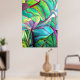 From original watercolor painting of tropical "Blue Hawaii" foliage leaves, tropical palm plant. This original brightly coloured art features colours of green, blue, purple and burgundy. Leaf and foliage art.