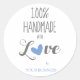 Blue Heart 100% Handmade with Love Quote Classic Round Sticker