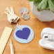 This keychain features a shapely blue heart on a light blue background.