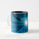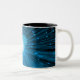 Modern design with a shining, sparkling blue and white heart on a glowing blue, white and black background. Mug with a blue, black and white customisable design for you to personalise with your own text, images and ideas. Created by Jess Perry using original photographs and digital techniques.