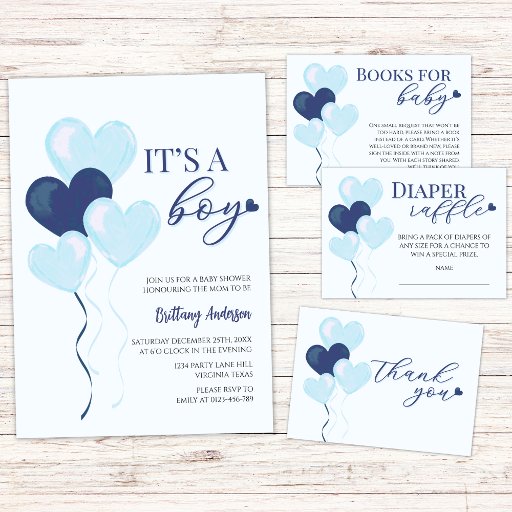 This design features Valentines themed baby shower can cooler with the title "It's a Boy" and blue heart balloons watercolor illustration. This product can be easily personalised with your details.