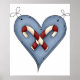 decorate your walls with this primitive blue heart poster featuring a rustic candy cane design. the folk art aesthetic and muted colors bring a cozy country christmas feel to any room in your home. this high quality print is perfect for fans of americana and shabby chic holiday decor who want to add a touch of vintage charm to their seasonal wall art collection.