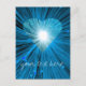 Modern design with a shining, sparkling blue and white heart on a glowing blue, white and black background. Postcard with a blue, black and white customisable design for you to personalise with your own text, images and ideas. Created by Jess Perry using original photographs and digital techniques.