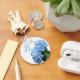 Blue hydrangea flowers key ring with place for a monogram initial. Light blue petals and some green leaves decorate key chains that come in many shapes and styles and price ranges. These pretty little key rings make nice gifts for bridesmaids, or anyone who loves blue hydrangeas. This design may not fit every shape correctly. It will arrive as you see it in the preview.