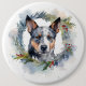Blue Heeler Christmas Wreath Festive Pup 6 Cm Round Badge