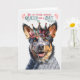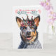 This adorable Blue Heeler or Queensland Heeler, also often referred to as the Australian Cattle Dog, wears a leafy crown to create a fun birthday card fit for a queen.