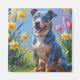 Blue Heeler Dog Spring Flowers Painting Magnet