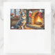 Blue Heeler Fireplace with Christmas Lights Rectangular Sticker